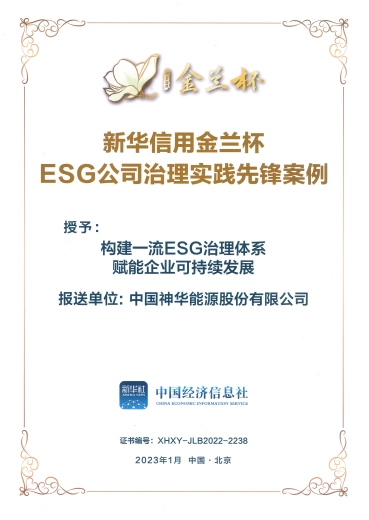 2023年1月,入選“新華信用金蘭杯”ESG公司治理實踐先鋒案例